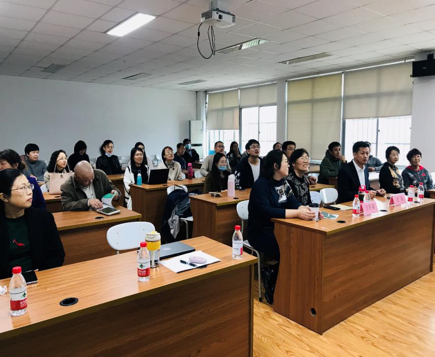 工会副主席万萍莉和学校教职工代表共同聆听讲座。