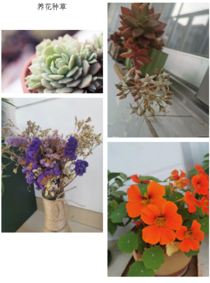 除了必要的学习,娱乐放松也不可少。趁着在家赋闲,同学们掌握了不少技能。不仅承包了一日三餐,还包揽了阳台上的花花草草,而且妈妈再也不用担心家务没人做了。还有同学发动艺术细胞进行创作,挥洒汗水健身锻炼体格,时刻不忘提升自我。